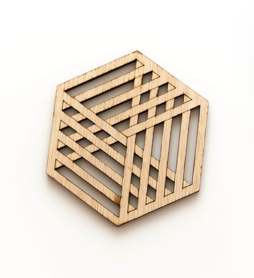 Elevate your coffee table or desk with this Intertwined Hexagon Coaster Set. Made from high-quality wood, this set of four coasters features a unique intertwined hexagon design that is both stylish and functional. Each coaster is 4 inches in diameter, providing ample space for your favorite mug or glass.
