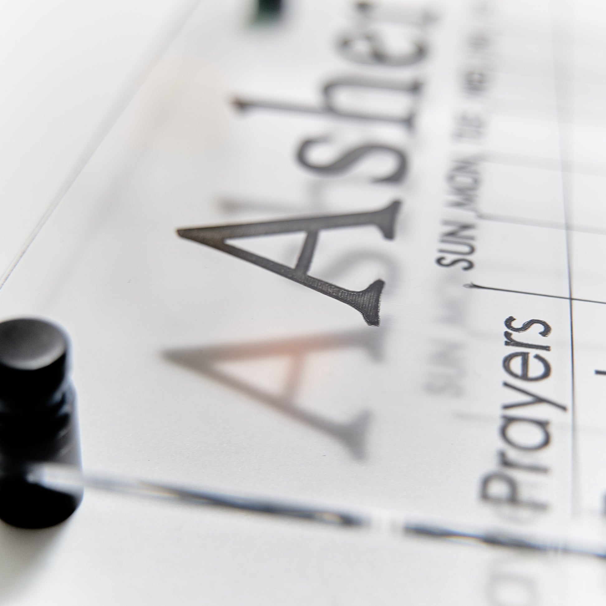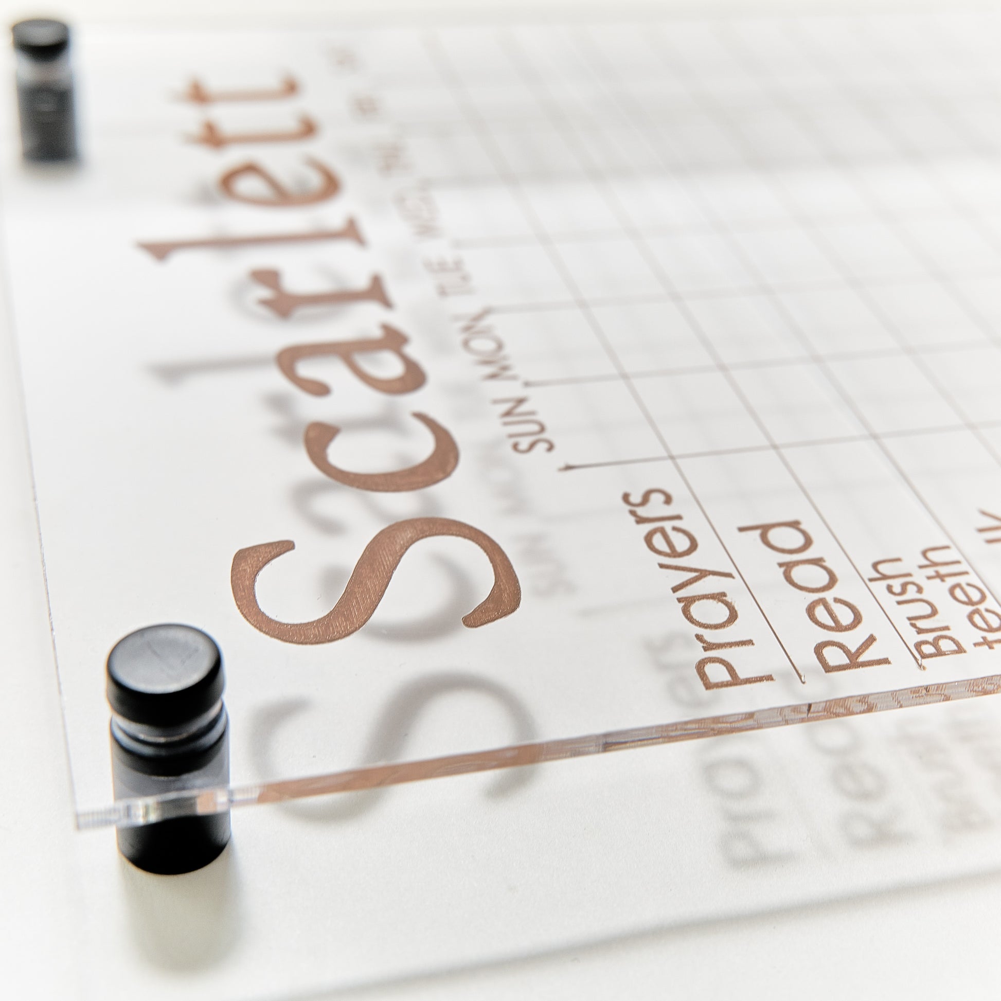 Available in different sizes, our Dry-Erase Personalized Chore Charts can be used in any room of the house. And, with the option to include hardware or use your own, you can choose the best way to display your charts. Black or brass hardware is available to complement your home decor.