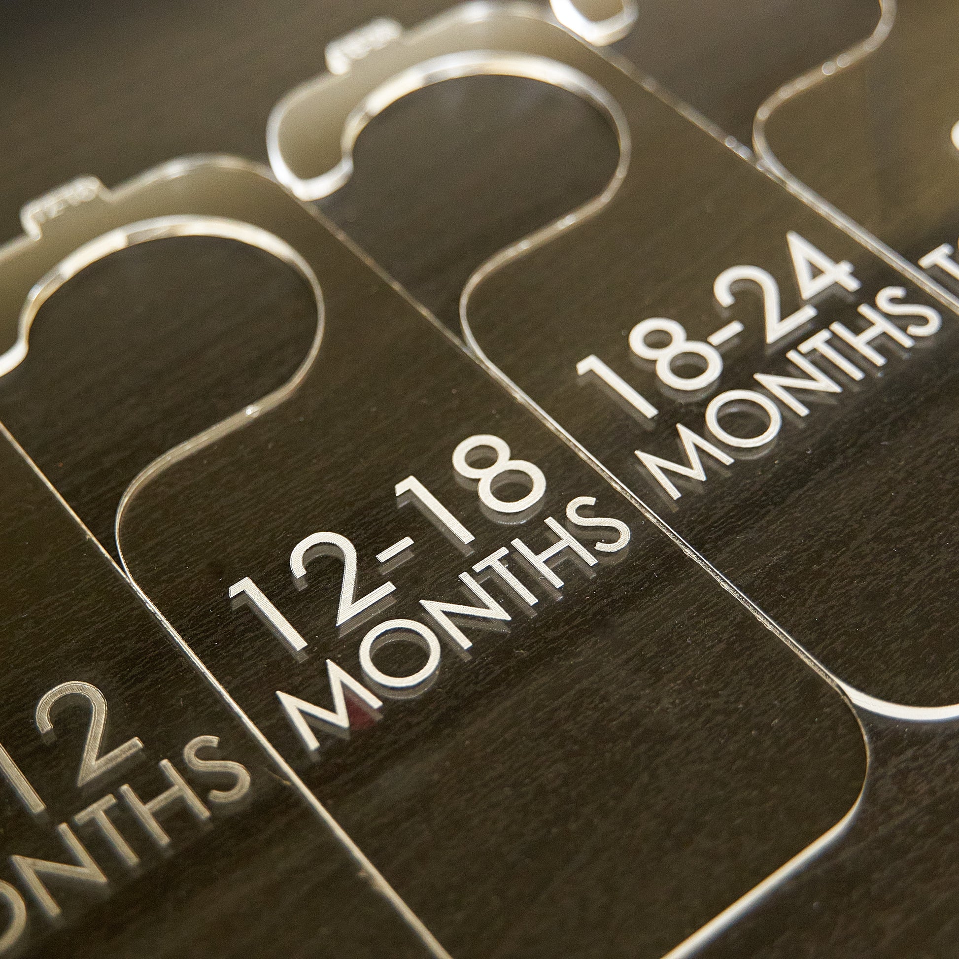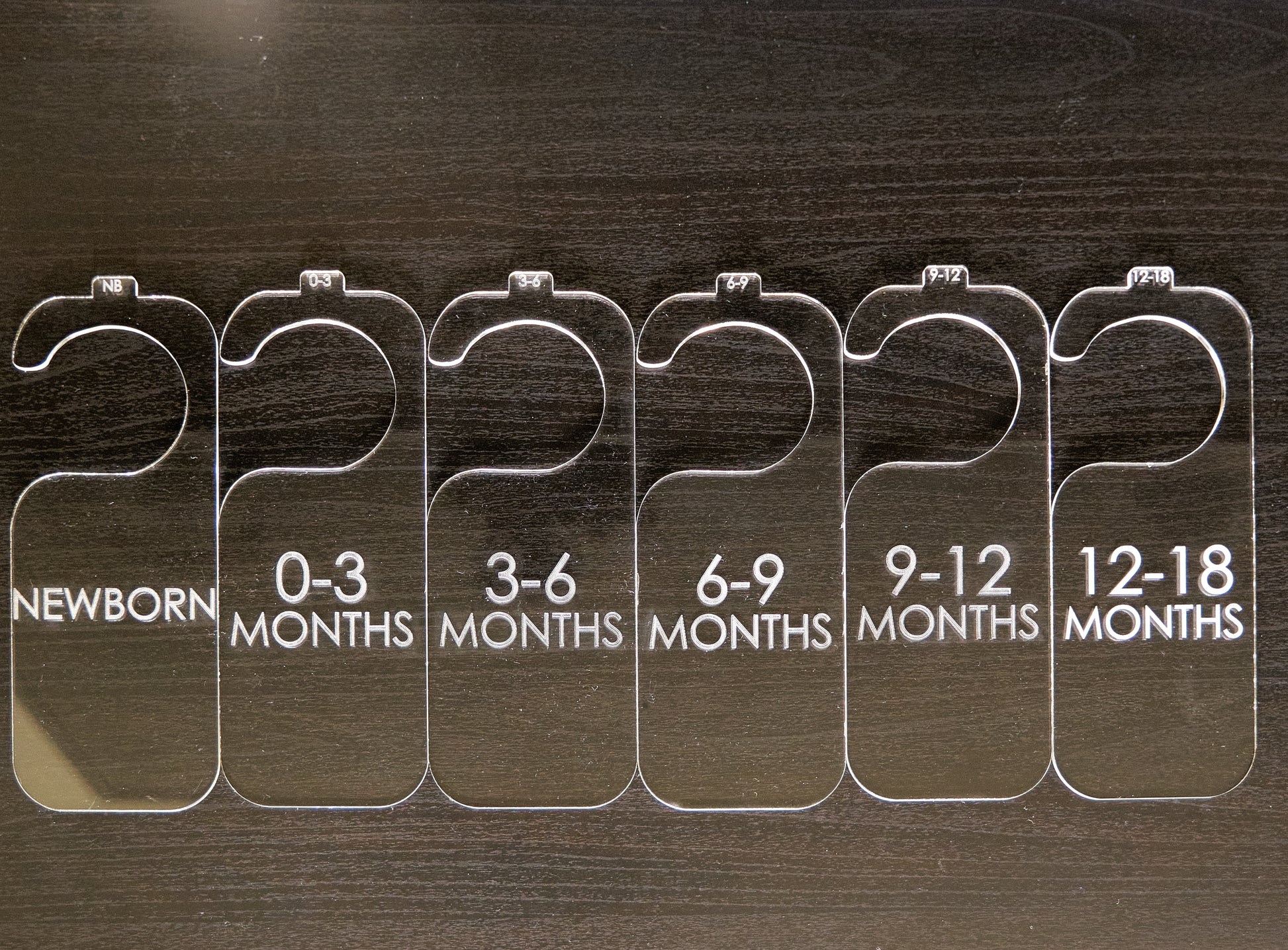 Introducing our Simple Acrylic Baby Hanger Dividers! Keep your little one's closet organized and stress-free with these stylish hangers. Made from 1/8 inch laser-engraved acrylic, these hangers are the perfect solution to maintaining order in your baby's wardrobe. Our sophisticated design not only creates a neat and tidy system but also adds an adorable touch to your baby's closet. Plus, your purchase supports a small family business, so thank you for your support! If you have any questions or concerns, feel free to message us as your satisfaction is our top priority. Looking for something custom? Let us know! Follow @abbottlaser on Instagram for more products, giveaways, and coupon codes. Shop now and experience the convenience and elegance of our Simple Acrylic Baby Hanger Dividers.