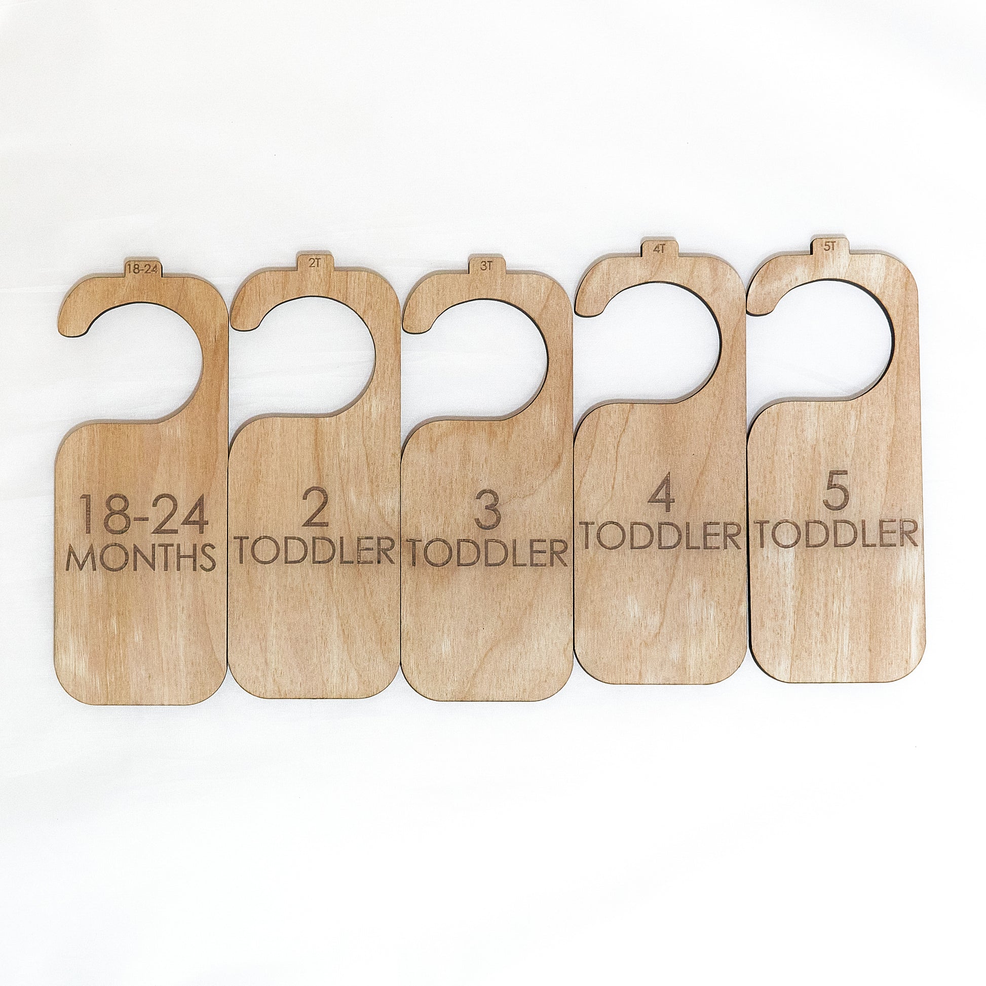 Organize your baby's closet in style with these simple wooden hanger dividers! Made from durable 1/4 inch wood and laser engraved, these dividers are perfect for newborns up to 5T. The dividers feature clear labels for easy organization and come in different set options for your ever changing needs.